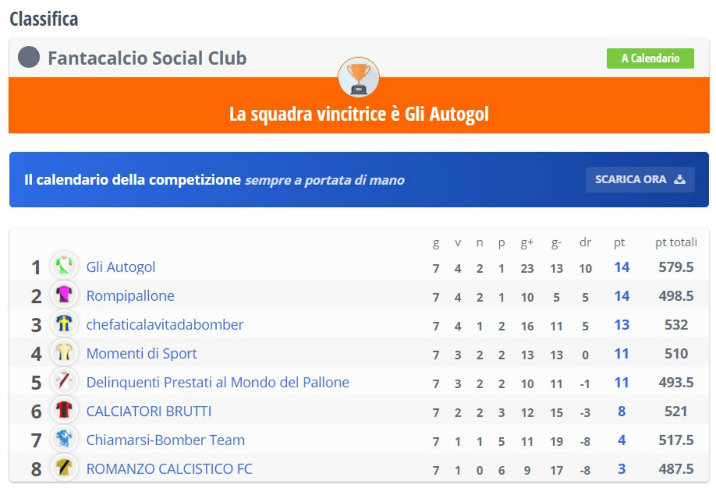 - LEGGI ANCHE: Fantacalcio Social Club, 4a giornata. Che attacco gli Autogol! Sono in testa con Rompipallone.it